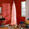 HOMCOM 8' Tall Pre-Lit Slim Noble Fir Artificial Pencil Christmas Tree with Realistic Branches, 300 Warm White LED Lights and 618 Tips, Pink