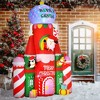 - Show Your Festiveness: You and your neighbors are going to marvel at this candy castle, there are a penguin, Santa Claus, and a reindeer are greeting. This Christmas blow up decoration is going to bring your outdoor holiday cheer to new heights and provide days of glad tidings to you.
