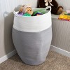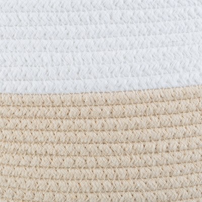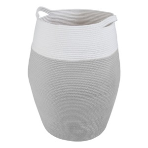 - The large basket is made of high-grade woven cotton rope for sturdiness and longevity and features integrated handles that allow you to move it around with ease