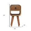 Give your room the look and feel of 5-star accommodations with this 16-inch oak brown solid wood square one drawer nightstand. Made of high quality solid mango wood with a curved edge, compact, square shape that is built to last. The easy open drawer allows you hidden storage to keep your essentials close at hand. An easy-access shelf gives you additional storage and display space. The unsung hero of the bedroom, this nightstand is perfect for keeping a glass of water, lamp, alarm clock, jewelry, and more, close by and easily accessible. Versatile in use this nightstand would also work as a great end table in the living room, hallway, or office. 15.70-inch h x 7.90-inch w x 7.90-inch d.