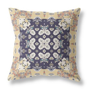 The 16" x 16" yellow and navy floral blown seam suede throw pillow is the perfect decorative accessory for your home. Great to use on its own or mix with other decorations for the perfect look. A great decorative accessory for your favorite chair, to accent your sofa, or to use as part of your bed ensemble. 5" H x 16" W x 16" D