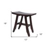 The 18-inch dark brown teak rectangular shower bench combines style and functionality for your bathing space. Crafted from high-quality teak, this bench boasts a modern design that enhances any bathroom decor. The rectangular seat shape provides ample space for sitting comfortably. Equipped with non-slip feet, this bench ensures safety and stability on wet surfaces. Additionally, the leg levelers allow for easy adjustment on uneven floors, making it a practical addition to your shower setup. Enjoy the perfect blend of luxury and convenience with this exquisite shower bench. 18-inch h x 18-inch w x 12-inch d.
