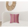 18" X 18" Pink And Green Geometric Blown Seam Suede Throw Pillow