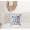 18" X 18" Off White And Blue Floral Blown Seam Suede Throw Pillow