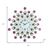 HomeRoots 27" Purple Green And White Metal and Glass Silent Analog Floral Round Wall Clock