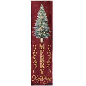 HomeRoots 36" Red and Green Merry Christmas Christmas Tree Solid Wood Porch Sign
