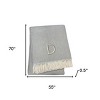 HomeRoots 55" X 70" Gray And White Herringbone Cotton Blend D Initial Throw Blanket with Tassels And Embroidery