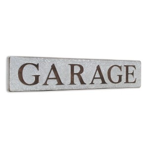 Rectangular wall decor made of galvanized metal with "Garage" text for a rustic touch.