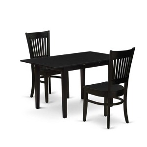HomeStock 3-Pc Black Finish Rectangular Solid Wood Top With Butterfly Leaf Dining Table Set