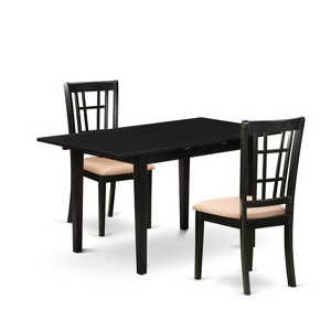 HomeStock 3-Pc Black Finish Rectangular Solid Wood Top with Butterfly Leaf Dining Table Set