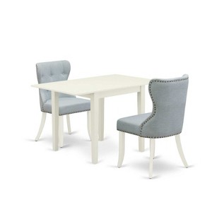 HomeStock 3-Pc Linen White Finish Rectangular Solid Wood Top with Dropleaf Dining Table Set