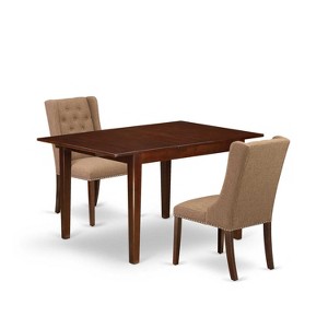 HomeStock 3-Pc Mahogany Finish Rectangular Solid Wood Top with Butterfly Leaf Dining Table Set