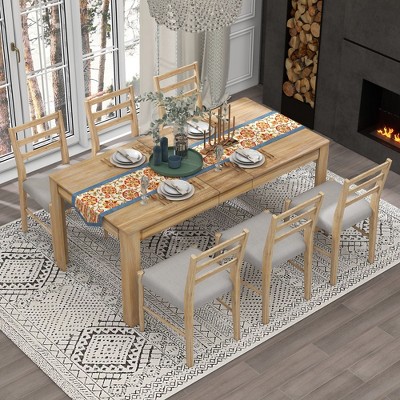 HomeStock 3-Pc Mahogany Finish Rectangular Solid Wood Top With Butterfly Leaf Dining Table Set