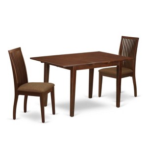 HomeStock 3-Pc Mahogany Finish Rectangular Solid Wood Top With Butterfly Leaf Dining Table Set