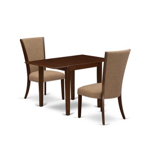 HomeStock 3-Pc Mahogany Finish Rectangular Solid Wood Top with Dropleaf Dining Table Set