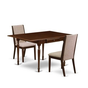 HomeStock 3-Pc Mahogany Finish Rectangular Solid Wood Top with Dropleaf Dining Table Set