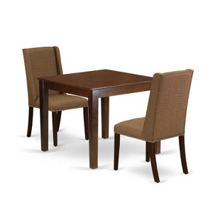 HomeStock 3-Piece Mahogany Finish Rectangular Solid Wood Top Dining Table Set