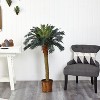 Standing a perky 4 feet tall this palm-like tree is a fabulous tropical accent for your home or office. Sizeable enough to liven up any space yet compact enough to fit any size room. Not a detail was missed, from its dark olive green leaves down to the sturdy spiny trunk. This tree is so natural, you may be tempted to water it.