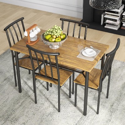 HomeStock Oval Kitchen Table Set with 6 Chairs Butterfly Leaf Dining Room Set