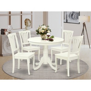 The ANAV5-LWH-W gorgeous kitchen Dinette set facilitates an affectionate family feeling. A cozy and luxurious Linen White color offers any dining-room a relaxing and friendly feel with the small kitchen table. This small dining table require a very less space and it'd be a great choice if you are struggling with the issue of space in your house. With a soft rounded Bevel at the edge of the table top, this well-designed and comfortable small kitchen Dinette table may be used for hours at a time. This amazing slick Linen White kitchen table makes a really good addition for all kitchen space and corresponds all sorts of dining-room concepts. These particular dining chairs present fashionable and comfy Seating, with wooden seats which let you enjoy a nice and trendy dining experience. Kitchen dining chairs come with wooden seat in rich Linen White finish to fit taste and desired design. Made up of hardwood, the chair is stable and offers a sturdy finish. The chairs add elegance and Class to any place you have placed them. The frame of the chairs are engineered to offer a great amount of comfort to your spine and thus reduce the chances of back pain. The matching color of the chair with the table brings a good contrast in the kitchen area. The standard shape, size and design makes the dining area significantly attractive. This contemporary, budget friendly, Durable and comfortable dining set can be good choice if you are looking for a great dining time experience with your family or friends. Table specifications: Material: Asian hardwood color: Linen White Dimensions: length 36; Width 36; Height 29. 5 Weight capacity: 300 lbs. chair Specifications: Material: Asian hardwood color: Linen White Dimensions: length 22; Width 18; Height 36 weight capacity: 300 lbs. Includes: 1 x round table 4 x Wooden chair polypropylene. : hardware package and instruction manual is located in/under the seat.Designed with both style and functionality in mind, this set blends seamlessly with a variety of décor styles — from modern minimalism to cozy farmhouse charm. Crafted with durable materials for everyday use, it offers comfort for family meals, casual brunches, or holiday gatherings. The easy-to-clean surfaces and sturdy build make it perfect for busy households. Available in multiple finishes to complement your space, this set is a timeless addition to your home that combines quality, style, and value.