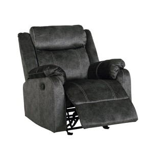 Instantly add contemporary comfort and style with this Granite finished glider recliner. Contrast stitching over soft printed microfiber upholstery offers a high-quality look and feel, while the plush pillow top arms and padded footrests provide superior comfort. This piece will be the focal point of your family room, everyone will love the chic look and relaxing feel of this motion chair