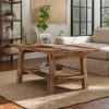 Hommoo 47" Solid Wood Coffee Table, 2-Tier Rectangle Center Table with Storage