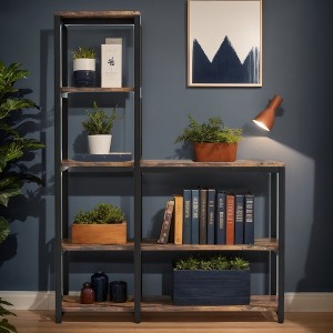 - Built with a heavy-duty metal frame and MDF particle board, this bookshelf combines durability with a vintage simplicity look.