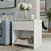 Multi-role design works equally beside beds, sofas or entryways—offering top display, drawer privacy and safe, soft corners for children or bustling households.