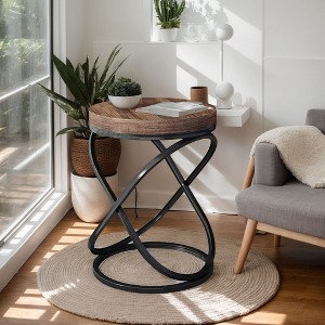 Hommoo Round End Table, Modern Sofa Side Table Rustic Brown & Black