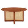 Homy Casa 36" Round Deep Red Coffee Table with Rattan-Style Panel Base
