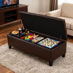 Combining refined style with everyday practicality, this Homy Casa storage bench features a deep tufted faux leather seat and a spacious interior for hidden storage. The rich dark brown finish brings a timeless elegance, while the cushioned top offers extra seating or a comfortable footrest. Perfect for bedrooms, living rooms, or entryways, it enhances your home with both function and sophistication — a smart addition to any modern or classic interior.