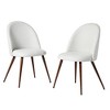 Add timeless elegance and comfort to your dining space with the Haven dining chair set fromHomy Casa. Upholstered in soft fabric, these chairs feature a high rounded backrest thatoffers ergonomic support and a refined sihouette. The slender walnut-finish legs bring mid-centurcharm while ensuring stability and durability. Perfect for modern dining rooms, kitchen nooks, orstylish home offices, this set combines comfort, elegance, and minimalist sophistication.