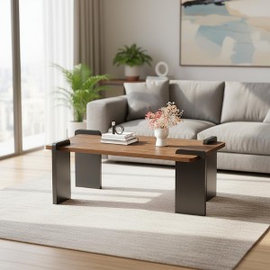 This coffee table offers a clean, modern look with a walnut-colored MDF tabletop and bold black legs for a striking contrast. Designed for living rooms, lounges, or small apartments, it provides a stable surface for daily use—from morning coffee to décor displays. The rectangular and square size options make it easy to fit different layouts, whether centered in a sofa setup or paired as a low accent table. Its smooth top is simple to clean, and the solid panel legs add a grounded, architectural feel to contemporary spaces.