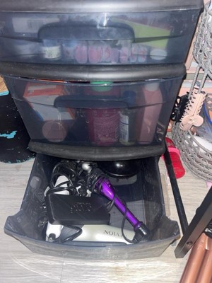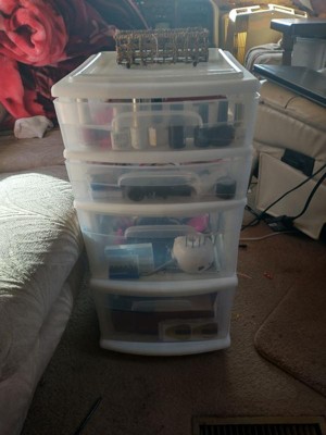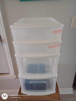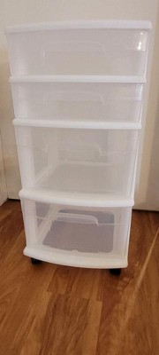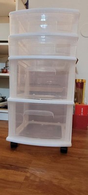 Homz Clear Plastic 4 Drawer Medium Home Organization Storage Container Tower w/2 Large and 2 Small Drawers, and Removeable Caster Wheels