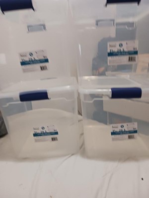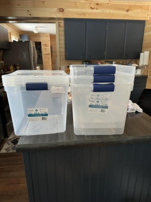 [This review was collected as part of a promotion.] I bought these latching storage containers last month to organize my decorations in the garage. They hold a ton and the crystal clear plastic helps see what is exactly inside, unlike the frosted type. I highly recommend these containers!