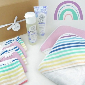 Are you looking for the perfect baby gift? Check out this adorable 9-piece bath time gift sets! Our extra plush and 100% organic cotton hooded towels and washcloths are must-have baby essentials that any mom would love. Our bath time gift set comes with two hooded towels and 5 washcloths with Honest® body lotion and shampoo + body wash. We pack this cute set in a craft gift box with a ribbon and tag so you don't have to add gift-wrapping for this item - it's included! Does it get any easier to give a great gift? That’s a wrap!