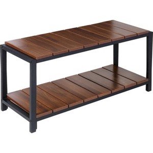 Honey-Can-Do 2 Tier Shoe Storage Bench Walnut: Shoe Rack Bench, Holds 8 Pairs, Ground Freestanding, Particle Board Frame