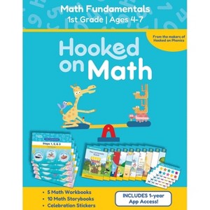 Build your child's math confidence with the Hooked on Math(R) Math Fundamentals Kit! Perfect for ages 4-7, this step-by-step program teaches addition, subtraction, place value, and problem-solving through interactive workbooks, storybooks, stickers, and fun app-based games. Hooked on Math(R) Math Fundamentals Kit - Learn Addition, Subtraction, Place Value & Counting Strategies with Storybooks, Workbooks, Stickers & App Access Essential Early Math Practice for Kids Ages 4-7 Give your child the essential foundation in math with the Hooked on Math(R) Math Fundamentals Kit! Designed for kids ages 4-7, this hands-on program builds early math skills step by step--from number sense and basic addition to subtraction, strategies for solving problems, place value, and skip counting up to 100. The kit includes 5 workbooks that progress from simple math facts to solving two-digit addition and subtraction problems. There are 10 math-themed storybooks that make learning relatable and fun, showing concepts like part-part-whole, fact families, and place value in engaging, story-based contexts. Star stickers help celebrate progress in every step, reinforcing achievement and encouraging motivation. Every kit also includes an activation code for the Hooked on Math App, which extends learning digitally, offering interactive lessons and games that correlate directly with the workbooks. This kit develops confidence, fluency, and a love of math--step by step! What's Included: 5 Workbooks