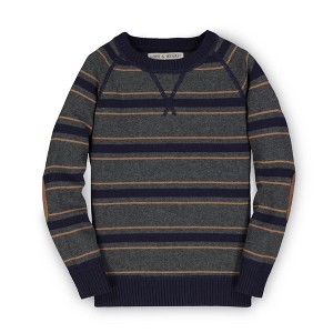 Product Name: Hope & Henry Boys' Crewneck Pullover Sweater with Elbow Patches (Charcoal Heather and Navy Stripe, 3-6 Months)