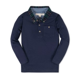 Product Name: Hope & Henry Boys' Organic Long Sleeve Polo Shirt with Woven Collar, Navy with Scottish Collar, Small