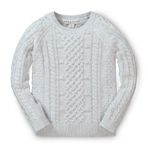 This showstopper of a sweater will have your girl covered during cooler months. Features a gorgeous cable knit in soft organic cotton throughout the entire sweater.