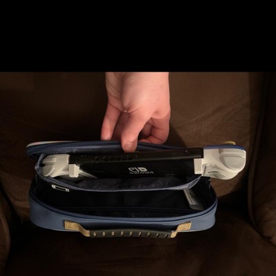 It's super cute, not a hard case but it is cushioned. There's a pocket the switch fits into that's also lightly padded, I'll probably place my own thicker pad into that slot from a different case that I have. It doesn't open all the way, there's fabric inbetween both sides that stops it from opening completely, I may cut it so I can open it all the way, which is just preference.