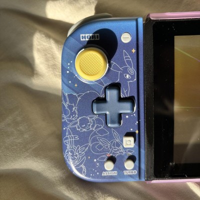 It’s extremely cute, the designs are subtle yet so detailed. Haven’t really figured out how to assign the extra buttons but I’m learning as I go. A complaint I do have about them would be the feel / quality of them. The joysticks feel good I have chunky short thumbs and they reach for movement when I play Pokémon & Fortnite. I wish they’d fit the regular handles where you can attach controllers but they don’t so they’re only really for having them ON the switch. They don’t fit in my switch case while on so if I want to take them for travel they have to be removed and packed separately. They feel overall very light and soft in the back when I hold. I’d rate it 7/10 hopefully maybe working out the advanced controller settings would make me like it more but overall it’s mainly the feel of it mixed with the inability to use with a case or the hand held controller version that know I it down a bit for me. Great buy though for a Pokémon touch
