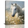 Horse Wall Art, White Horse Flowers Pictures Wall Decor, Animal Canvas Prints Painting Frame Artwork for Living Room Bathroom Bedroom