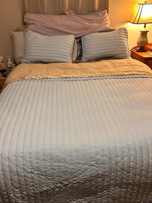 [This review was collected as part of a promotion.] This lightweight quilt set is perfect as temperatures warm up. It is soft, comfy and gits perfectly on a full/queen bed. It dries quickly as well, which is great. I did receive this product free in exchange for my honest review from Influenster.