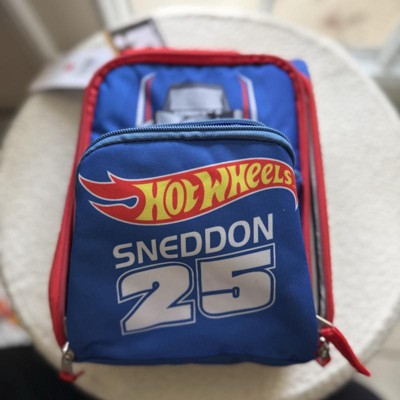 [This review was collected as part of a promotion.] This is a super cute lunch box for any child who loves Hot Wheels. The main insulated compartment has a sturdy double zipper that can open on either side and there's also a good-sized front compartment to hold items that you don't need to keep cold such as snacks, napkin or plastic silverware. My only complaint is that it doesn't have a side pocket for a water bottle and the 2 compartments are too small for one and I wish the overall size of the lunch box was a little bigger. I received an incentive to write this review.
