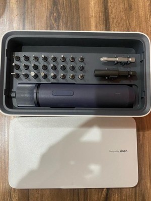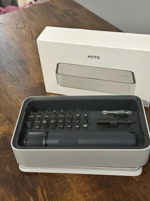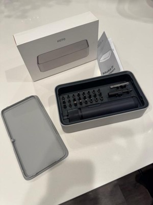 [This review was collected as part of a promotion.] I was thoroughly impressed when I opened this toolbox/kit from the brand Hoto. It's sleek, lightweight, stylish, and has a unique design that not only makes it visually appealing but also enhances its functionality. The box comes with an impressive array of 24 different sizes and styles of adapters, an extension rod, a bit holder, and the drill itself has three settings. Another notable feature is the automatic lights that illuminate the workspace as soon as you turn on the drill. Additionally, the drill uses a Type-C charging port, which is convenient since there are numerous charging cables scattered around my house. I also appreciate that the lid is securely fastened with a magnet lock, preventing it from coming off. I'm delighted to own this tool, as it could be incredibly useful in various household tasks, such as assembling furniture, working outdoors, or repairing toys. My wife has already expressed interest in it, so I suppose we share it. I would recommend it.