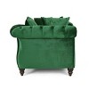 MODERN GLAM: Our tete-a-tete chaise lounge showcases jewel-like colors and lovely turned legs that pair seamlessly with its graceful scrolled arms for a luxurious modern glam look. Complemented with button tufted diamond stitching, this lounge brings a sleek touch to any decor.