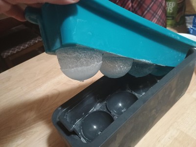 Houdini Clear Sphere Tray: Silicone Ice Mold & Maker, 4-Cavity, Dishwasher Safe, Turquoise Blue & Charcoal Gray