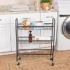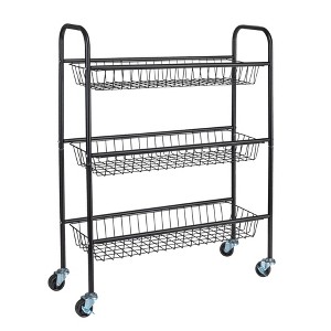 Find space for storage in the smallest of places with the help of this slim storage cart on smooth-rolling casters. This handy cart has a sleek profile and modern design to provide a functional storage option that looks just as chic as it is versatile. This slim storage cart has a durable steel frame on heavy-duty casters. The strong steel frame provides plenty of reliable support and long-term durability. The arched sides double as convenient handles to pull this cart in and out of tight spaces such as between the washer and dryer. Putting this storage cart together is easy with little assembly required. For increased mobility in small spaces, this cart rolls on smooth-rolling, heavy-duty casters. These casters can be locked with a simple press of a lever. This locking lever is also labeled for the on and off positions–so no need to guess if the wheels are locked or not! This versatile frame holds up 3 metal baskets which are made deep to easily hold larger laundry detergent bottles, a wide variety of toiletries, pantry essentials, planters and much more. This storage cart would be the perfect compact storage option for dorms, apartments, townhouses, tiny houses and any home with limited space. Its wide versatility and convenient qualities make this slim storage cart great for unlimited purposes around the house.